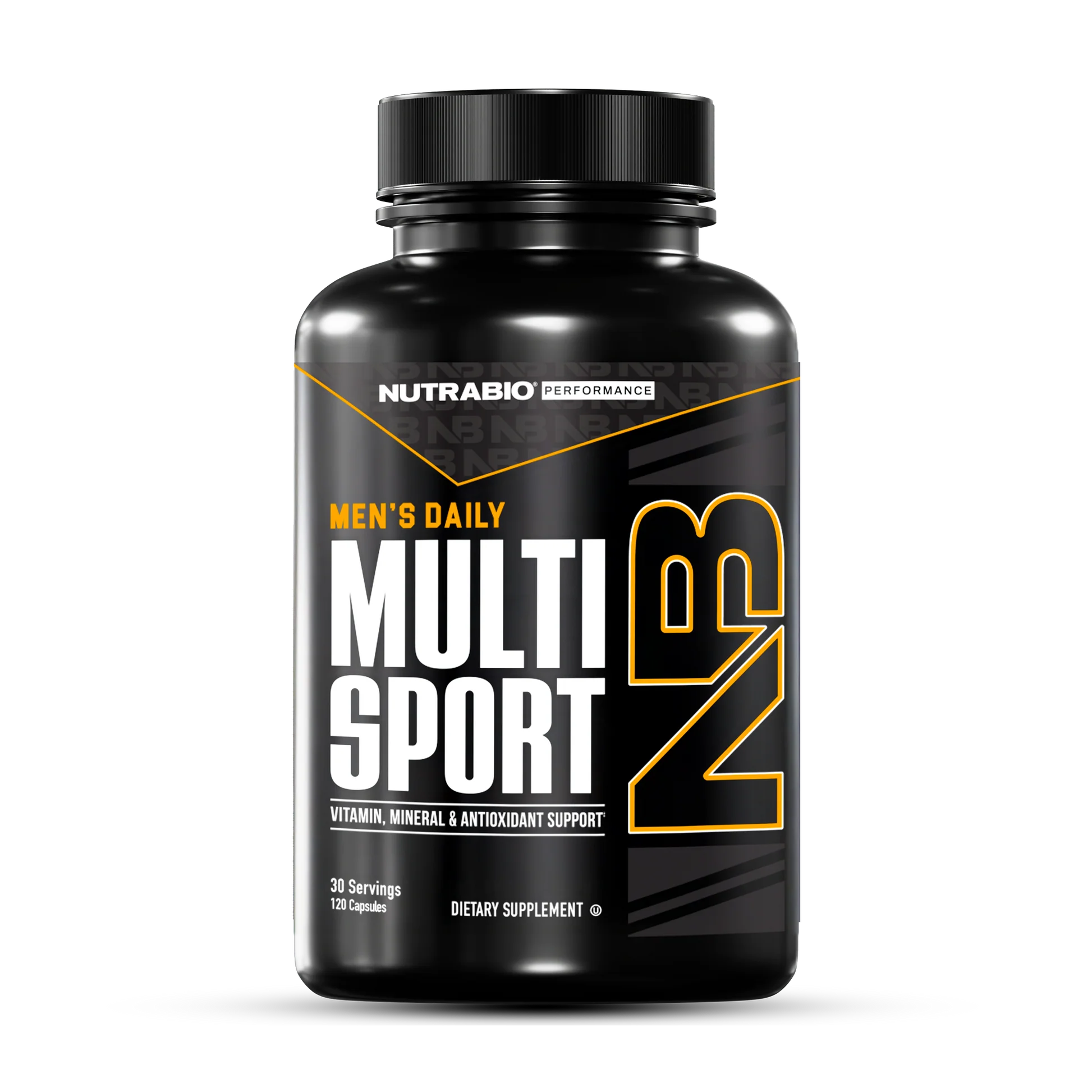 Nutrabio Multi-Sport for Men is a comprehensive multivitamin designed specifically for active men. Packed with 33 essential vitamins, minerals, and micronutrients, it supports athletic performance, boosts energy, and fills nutritional gaps in your daily diet. The formula features Albion Certified Chelated Minerals for superior absorption and stomach-friendly delivery, plus a powerful antioxidant blend to help protect your body from oxidative stress. Make it your daily foundation for peak performance and overall wellness.