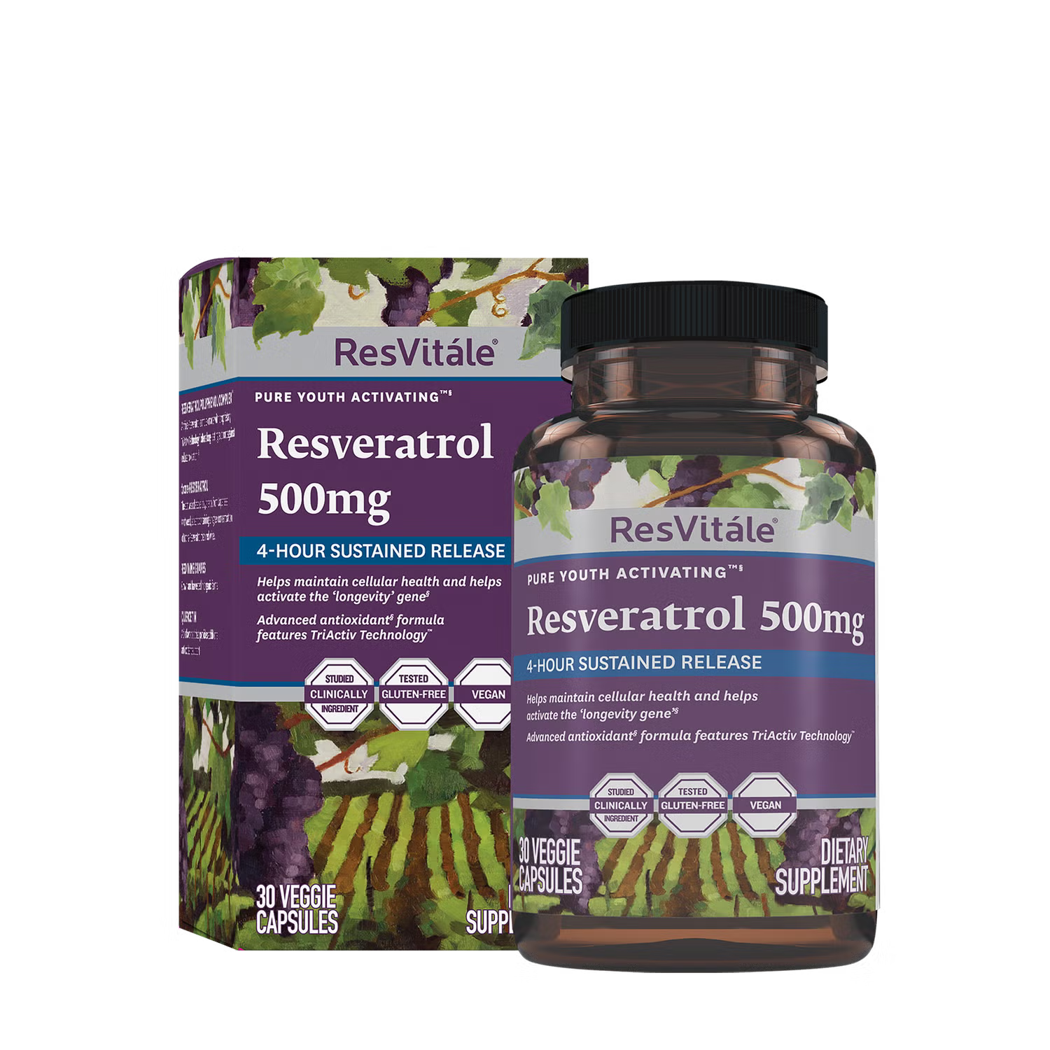 ResVitále™ Resveratrol 500mg delivers powerful antioxidant support from wildcrafted Japanese Knotweed, a natural source rich in trans-Resveratrol. This formula combines three premium sources—trans-Resveratrol, organic French red wine grapes, and organic Muscadine grapes—enhanced with Quercetin for comprehensive cellular protection. Vegan and gluten-free, it's designed to help support your body's natural defense against oxidative stress.*